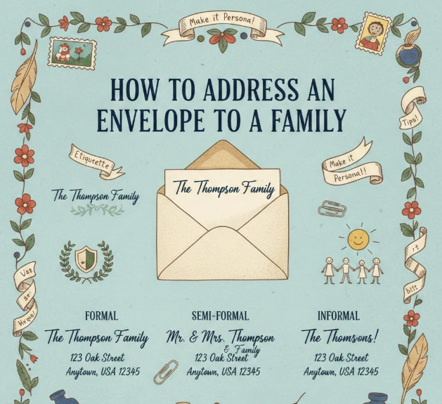 Addressing an envelope to a family requires etiquette awareness and clarity. Whether formal or informal, the format should reflect the occasion. Wedding invitations and holiday cards often follow traditional naming conventions.