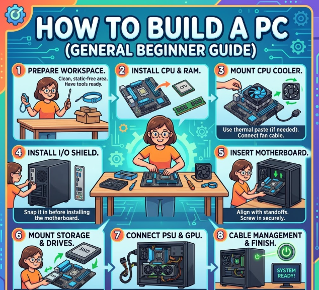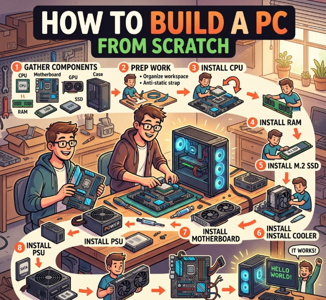 Building a PC is the process of selecting compatible hardware components and assembling them into a fully functional computer system. It involves careful planning, understanding hardware roles, and following a structured installation process. In 2026, PC building has become more beginner-friendly due to improved documentation, modular hardware, and better compatibility tools.