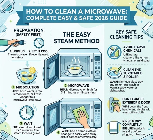 By following the step-by-step methods in this guide, you can ensure your microwave stays fresh, clean, and fully functional in 2026 and beyond.