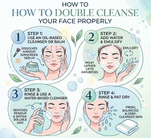 If you’ve ever removed your makeup at night and still noticed residue on your towel, you’re not alone. Learning how to double cleanse can transform your skincare routine by deeply removing sunscreen, oil buildup, pollution, and impurities that a single wash often leaves behind. Originally popularized in Korean skincare routines, double cleansing has become a dermatologist-recommended method for achieving clearer, healthier-looking skin.
