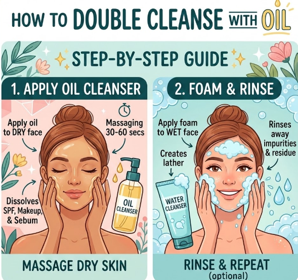 If you’re specifically searching for how to double cleanse with oil, the method involves selecting an oil cleanser that emulsifies properly.