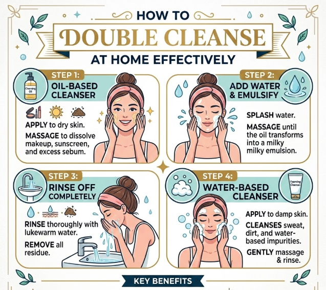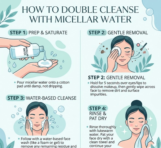 For minimal routines, learning how to double cleanse with micellar water offers a lightweight alternative.
