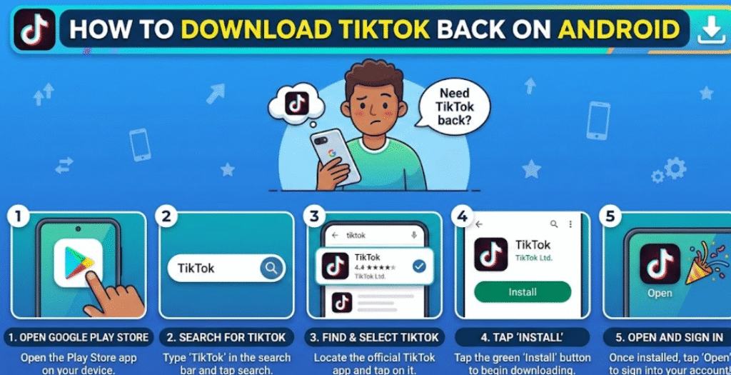 Android users typically reinstall TikTok via the official Android marketplace or trusted device-specific app stores. However, compatibility, device settings, and region limitations may affect access.