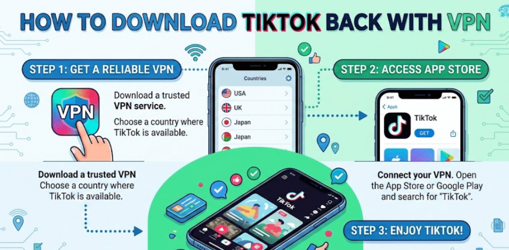 If you’re researching how to download TikTok back with VPN, proceed cautiously and prioritize legal compliance.