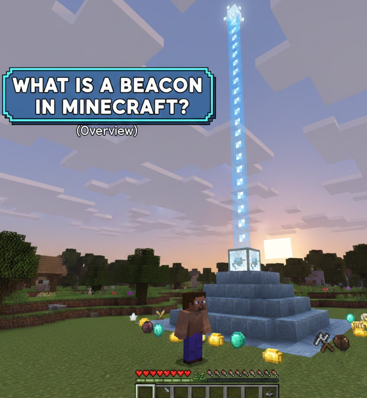 A beacon in Minecraft is a special block that emits a vertical beam of light into the sky and grants powerful buffs to nearby players. These buffs include speed, haste, resistance, jump boost, and strength. Beacons are considered end-game items because they require rare materials like a Nether Star.