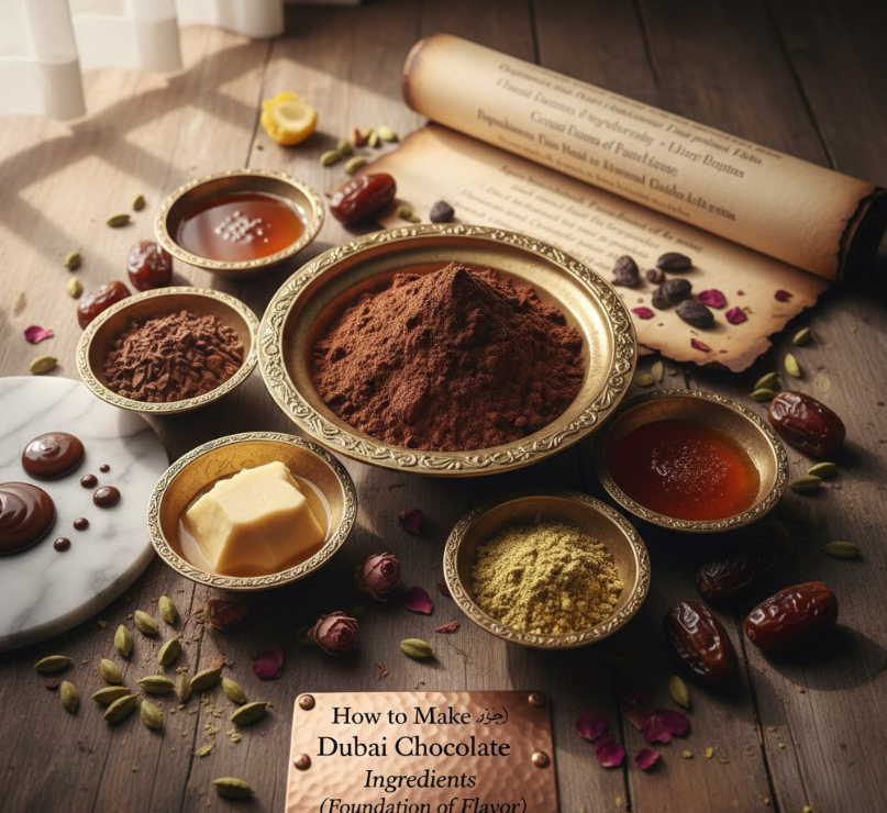 Understanding how to make Dubai chocolate ingredients is the most important step because the quality of ingredients directly defines the final result. Dubai chocolate relies on rich fats, smooth textures, and balanced sweetness.