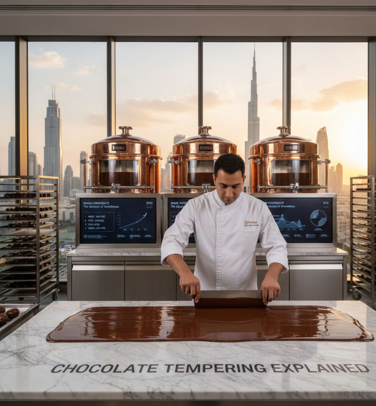 Tempering is essential when learning how to make Dubai chocolate professionally. Proper tempering ensures shine, snap, and stability.