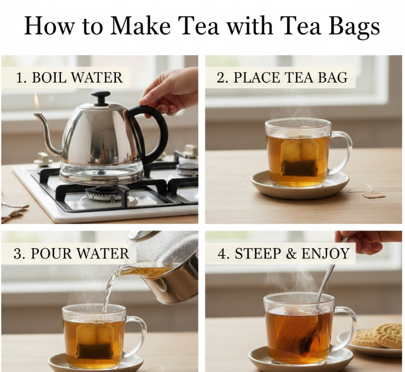 Learning how to make tea with tea bags is the most common and convenient method worldwide. Tea bags offer portion control, consistency, and ease, making them ideal for beginners and busy lifestyles.