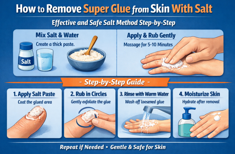 Knowing how to remove super glue from skin is essential for household safety and personal care. Whether using non-acetone methods, natural remedies, salt scrubs, or home techniques, the key is patience, gentle treatment, and proper moisturization. Following safety guidelines prevents irritation, protects sensitive skin, and ensures quick, effective glue removal for adults and children alike.