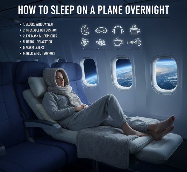 Learning how to sleep on a plane comfortably requires preparation before takeoff. Comfort depends on posture, clothing, hydration, and mental relaxation.