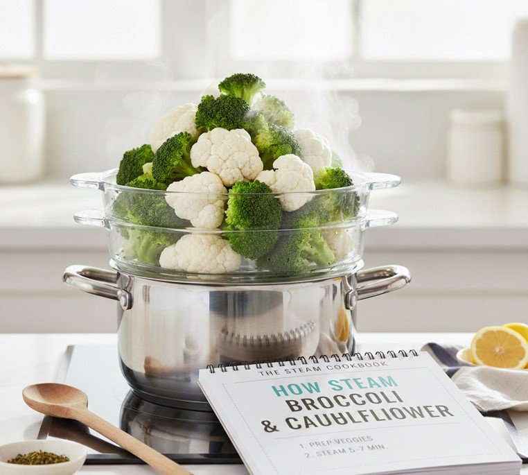 Stovetop steaming preserves broccoli’s natural taste without dilution.