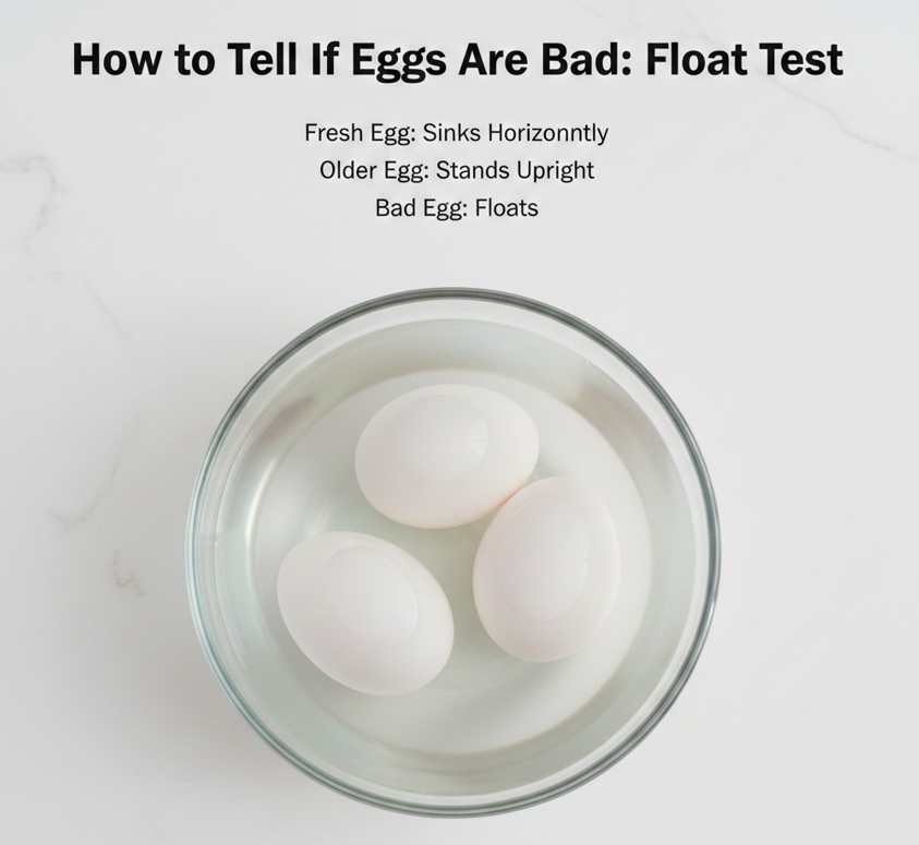 . Observe Egg Position: Fresh eggs sink and lie flat on the bottom. Slightly older eggs may tilt upward but still stay submerged. Eggs that float are usually spoiled due to increased air inside.