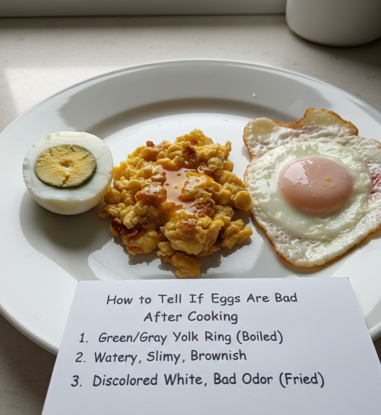 . Check Odor Immediately: Cooked eggs with a rotten smell indicate pre-existing spoilage. Even slight sulfuric smells should be treated as unsafe.